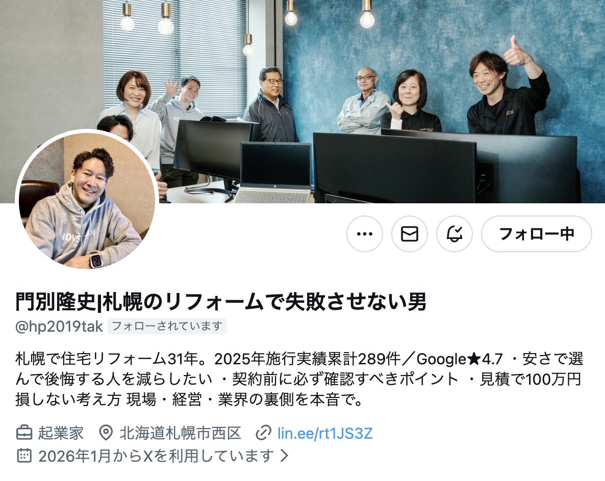 このたび、ハウスプラン代表・門別隆史がX(旧Twitter)の発信を再開しました。